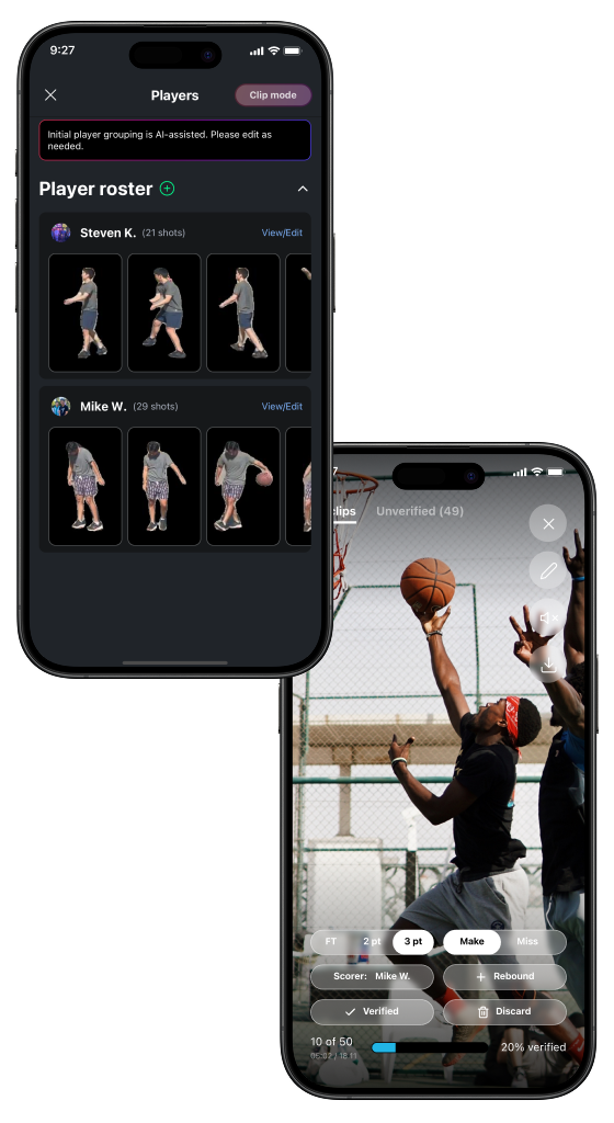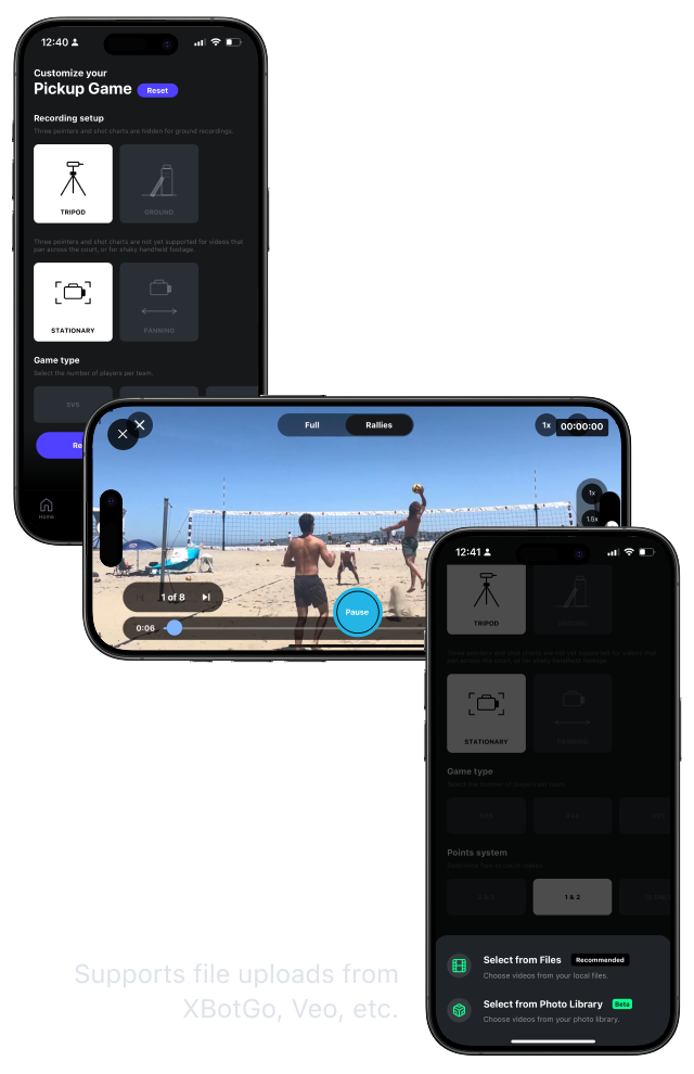 Just position your smartphone courtside and start playing. Our AI technology takes over from there, analyzing player movements and actions like spikes, blocks, sets, and digs automatically.